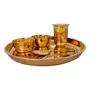 Shiv Shakti Arts Pure Brass Dinner Thali Set Serving Food Tableware - Dinnerware (Eatching Flower Design 6 Peices) - Gold