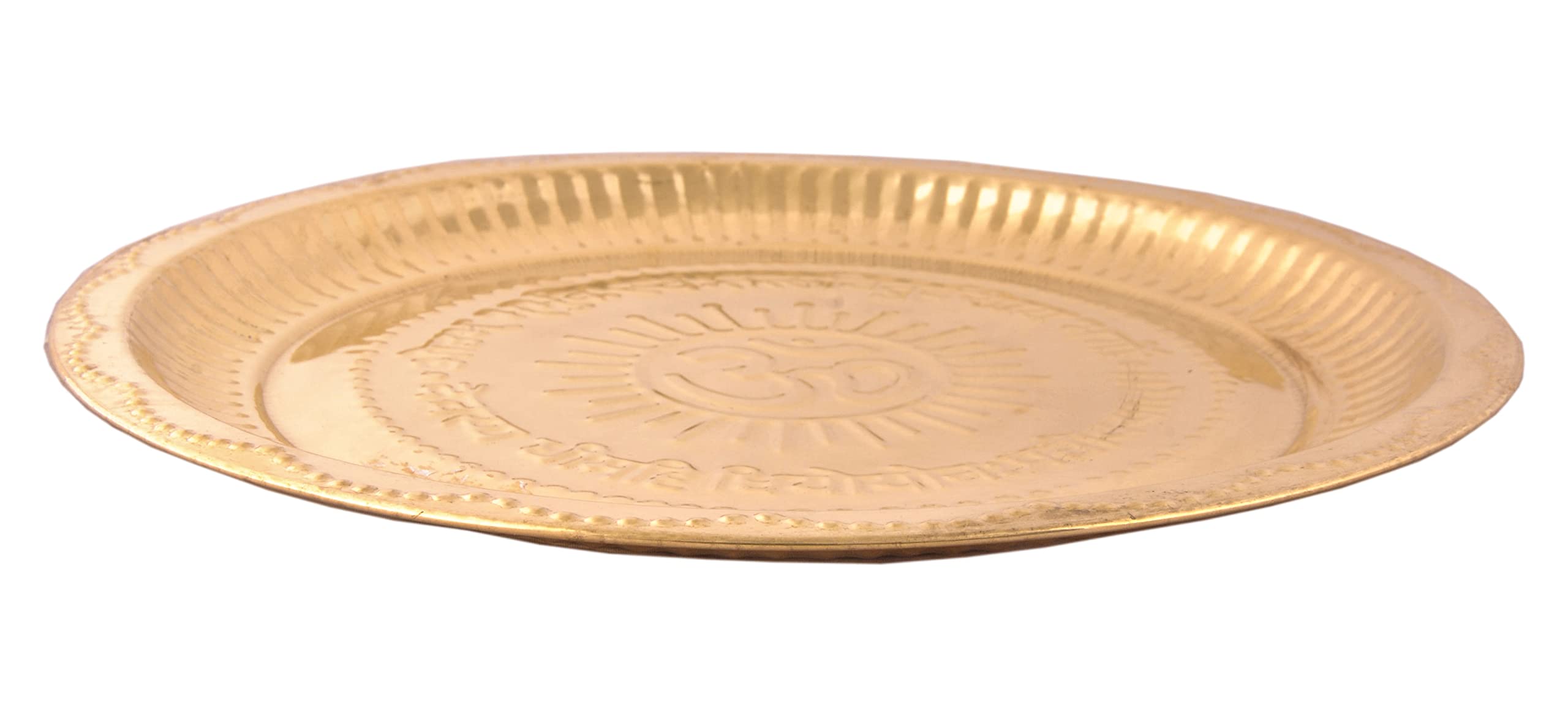• Brass Puja Plate With Om Design Weight-164 gm Height-2 cm Diameter-27 cm