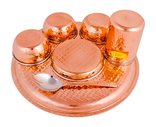 • This set is made from high quality Pure Copper making it exclusive and durable. 2) This set has been beautifully designed to add grace to your dining experience. 3) Easy to clean and wash With Pitambari Powder & they have very exotic shining.