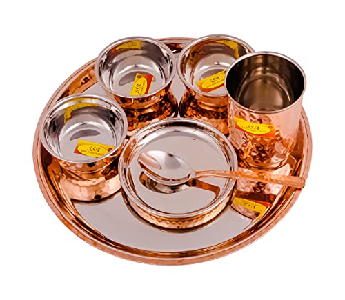 Shiv Shakti Arts Stainless Steel Copper Dinner Thali Set (7 Pieces - Luxury Hammer Design) Anarkali Dinner Set