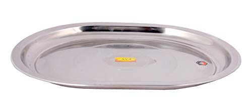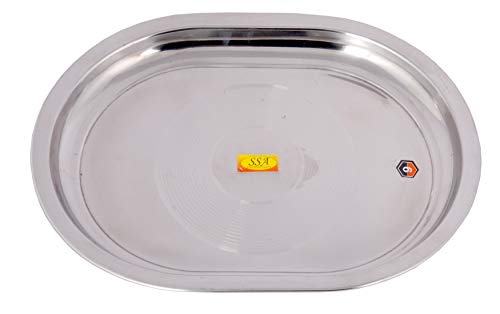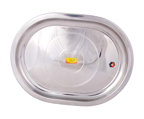 Shiv Shakti Arts Stainless Steel (Heavy Gauge) Serving Dinner Plate/Tray Dinnerware Set (13 Pcs) - for Serving Pudding - Ice Cream (Large - 40.3 cm) Oval