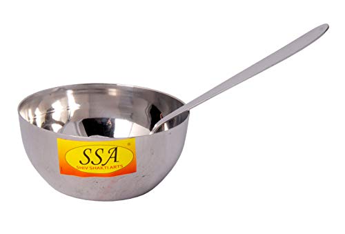 Make serving food hassle-free with the practical Shiv Shakti Arts Stainless Steel Thali/Plate Set! Made from 100% food-grade stainless steel these plate Set are food-safe and durable addition to your dining room. The heavy-gauge material makes them sturdy for everyday use. Designed with smoothened angular walls these spacious plates offer convenience in serving and keep food from spilling during consumption. Being dishwasher-friendly and easy to clean they require minimal maintenance. Available in a 7 Pcs Set these plates are suitable for serving a wholesome meal complete with rice dal 3-4 rotis along with 2 sabzis or Halwa to a company of Family.