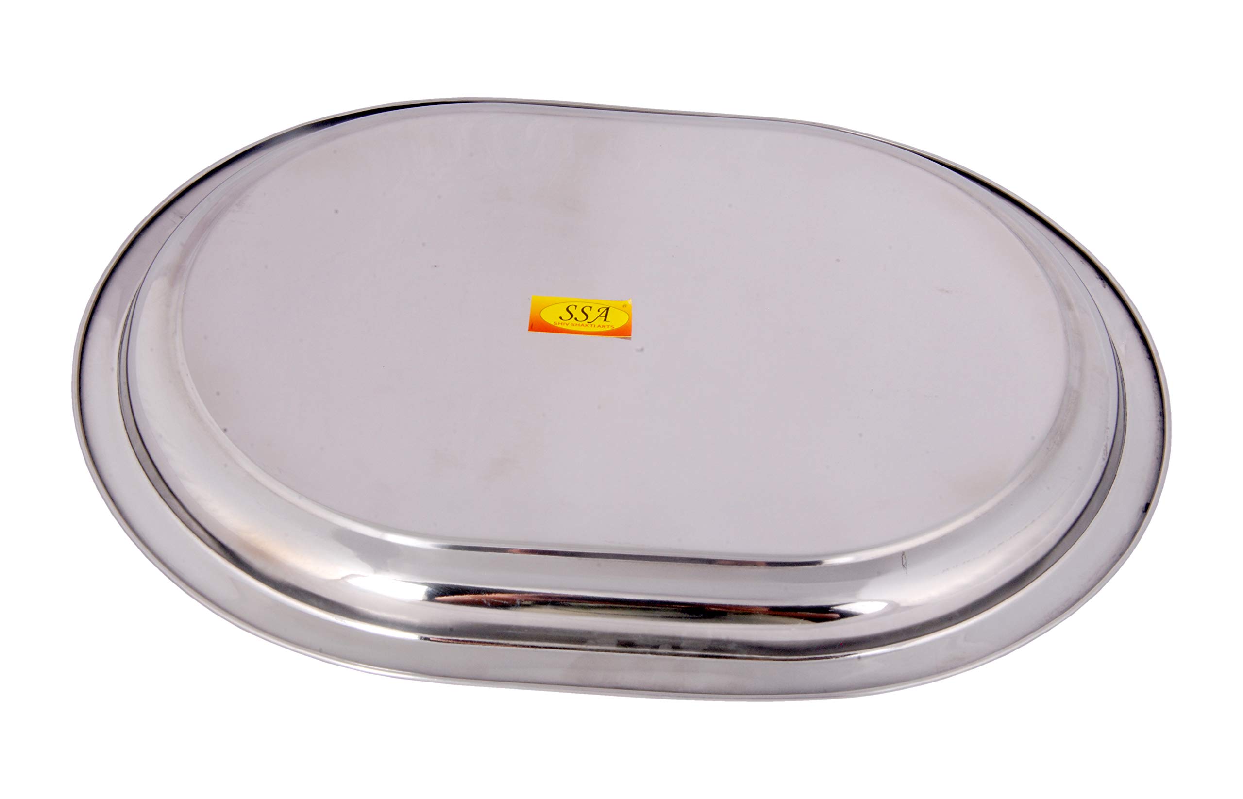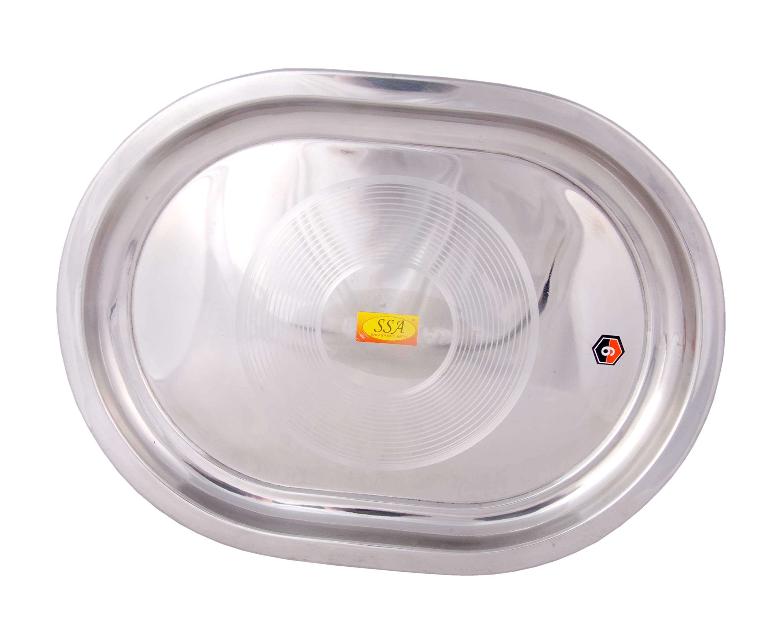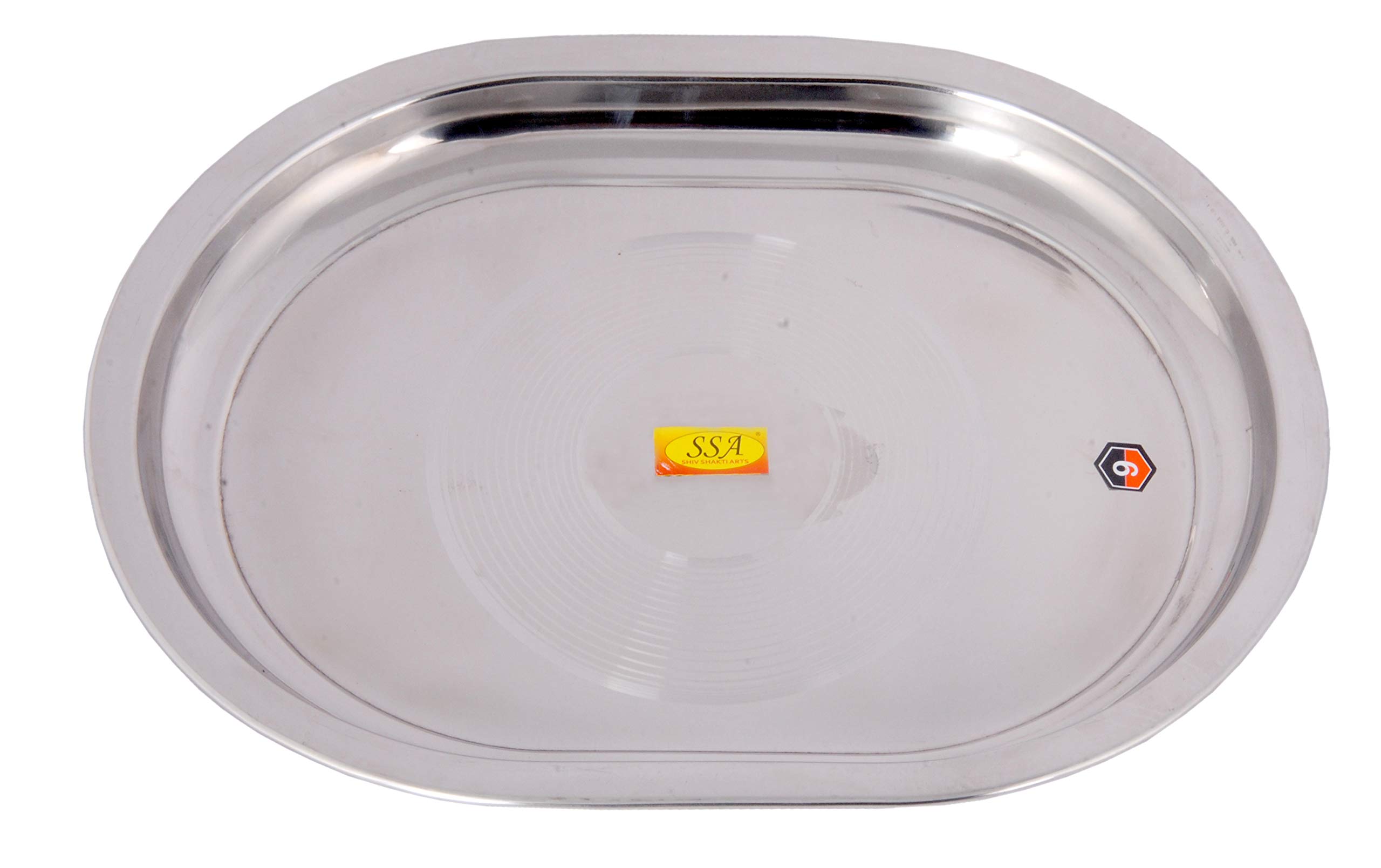 SHIV SHAKTI ARTS Stainless Steel (Heavy Gauge) Serving Tray | Plate | Platter Oval - (Silver Touch Design Length - 40.3 cm)