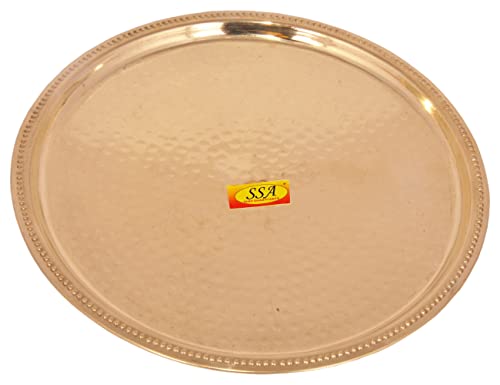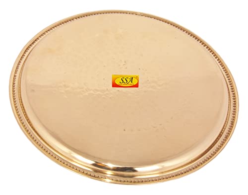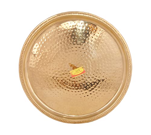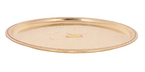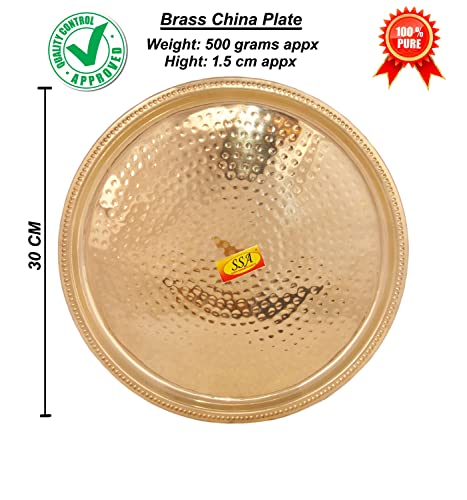 Shiv Shakti Arts® Handmade Pure Brass Plate/Dinner Thali Round Shape Hammered Design Diameter-30 cm 1 PIECE