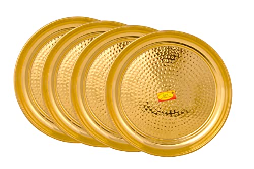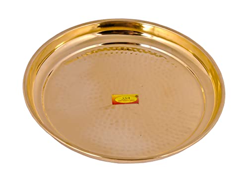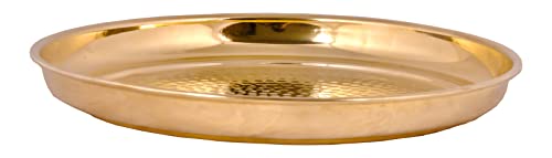 • SHIV SHAKTI ARTS Handmade Pure Brass Plate Thali Dish Hammered Design Homeware Hotelware Dinnerware Serveware Diameter-29 cm (1 Piece)