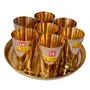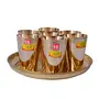 Shiv Shakti Arts® Pure Brass Glass Set with Plate Serving Purpose - Drinkware - Dinnerware Tableware (Apple Design 7 Glass in 1 Plate Set)