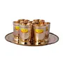 • Drinkware Pure Brass Glass Set With Plate Serving Purpose - Dinnerware Tableware (Embossed Karvi Design 7 Glass In 1 Plate Set)