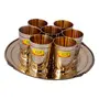 Shiv Shakti Arts® Pure Brass Glass Set with Plate Serving Purpose - Drinkware - Dinnerware Tableware (Embossed Karvi Design 7 Glass in 1 Plate Set)