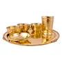 • Heighly Durable Engraved Flower Design Pure Brass Dinnerware Thali Set - Dimension => Plate : 2 x (12.5" Inch) 31.6 cm(Height x Width)Diameter - 12.5" Debth - 2 cm Weight - 618 Gm Approx. | Glass = ( Height x Width ) - 4.1 cm x 2.6 cm Debth - 9 cm Weight