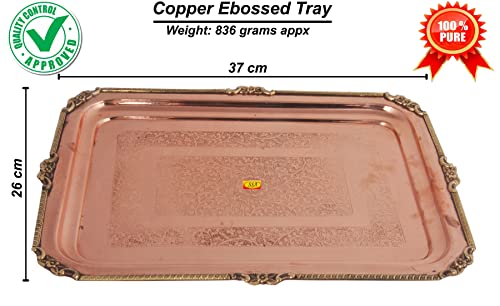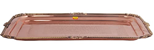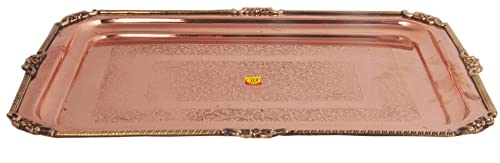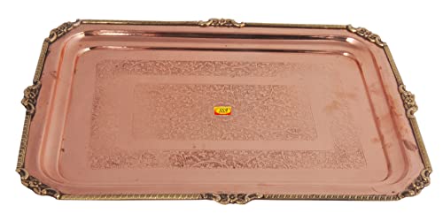 • Shiv Shakti Arts Pure Copper Tray | Plate | Platter | Serving Tray - ( Karvi Flower Eatching Design Big )