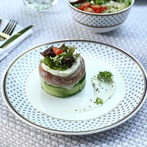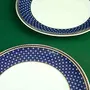 Inspired from the pristine shores of Sicilia Wonderchef presents to you their premium fine bone china dinnerware range - Sicilia. Like the clear water & luxurious lifestyle of the southern Italian coast this range is an ode to your opulent lifestyle. The Sicilia Royal Blue collection is the perfect balance of traditional design thought with a contemporary outlook. This collection has rich royal blue colour with real gold accents. Each piece of this collection portrays the artisan’s eye for detailing. The touch of gold rim around the blue base makes it a coveted piece. They undergo three stages of firing and stringent quality check to attain the finish. The colours and gold used are food safe. Match it with its complementary pieces (sold separately) to curate a lavish dinnerware set also perfect for gifting. Bring sophistication to your dinner table with this classic quarter plate in a set of two that comes with a captivating print on the surface. Serve breads salads and more in the quarter plate. It has been crafted from fine-quality material for extended durability to add a refined touch to your dining experience. The plates are food-grade have long-lasting designs and are also non-toxic & hygienic. Pair it with Sicilia dinner plates from the same collection for a complete dinner table look.