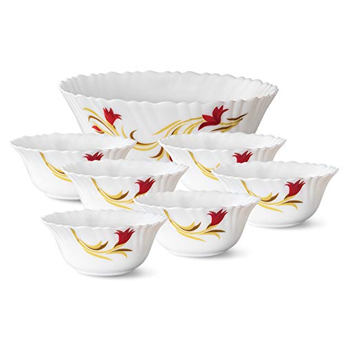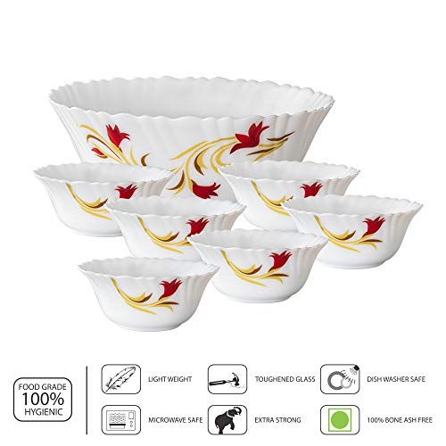 Larah by borosil brings 100 percent bone ash free opal ware with elegant designs. It is made out toughened glass which makes its extra strong and suitable foe daily use on the dinning table