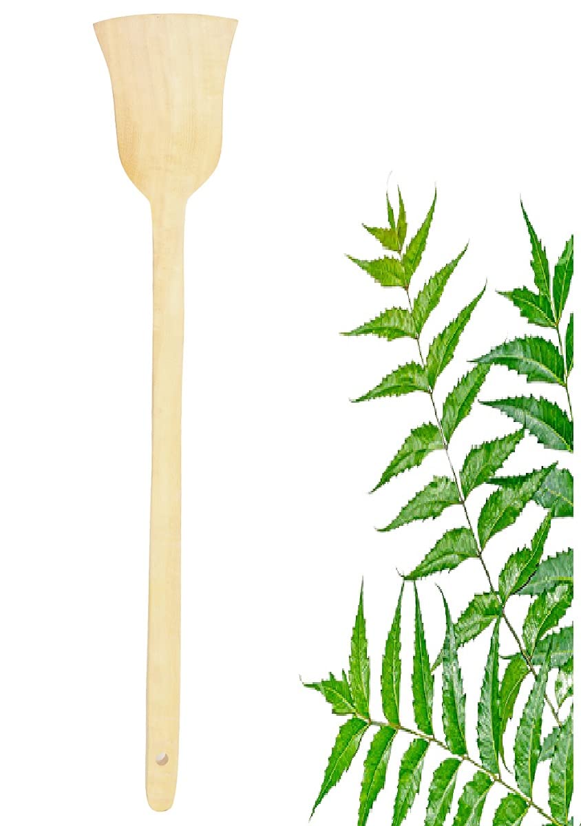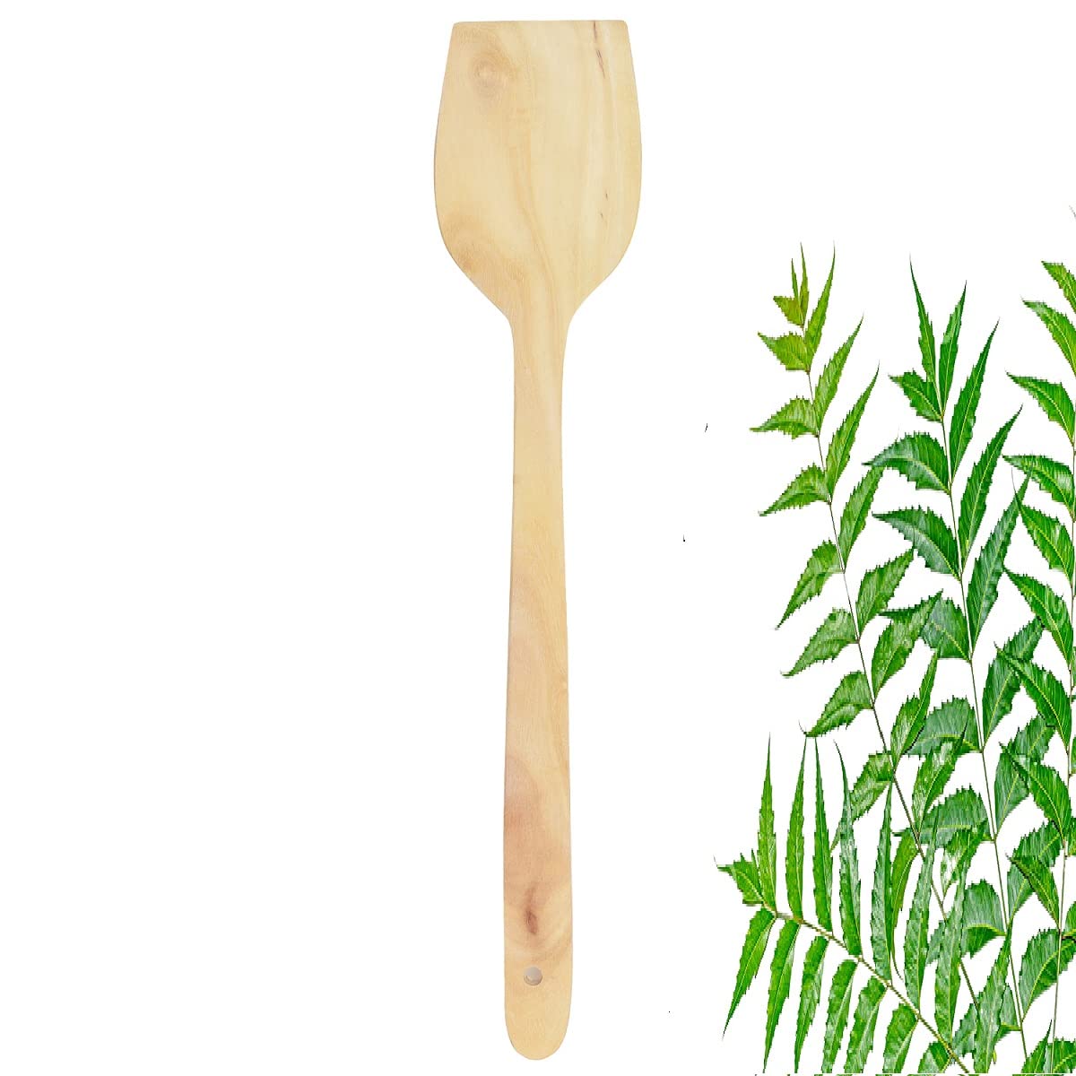 This Wooden Ladle Made of Deshi Neem wood. We know that neem wood is a precious wood. Set of 3 Kitchen spatulas are Safe for non-stick cookware. Get this wooden spoon cooking and serving. Dimensions: Length ranging from 28 to 38cm Spatulas are made from a single block of neem wood so it doesn't have any joints. No harmful shining polish is used which is harmful for health and prohibit the neem wood antibacterial function. The non-scratch wooden spatula is not going to leave any scratch on pan. Use mild soap and warn water for cleaning.