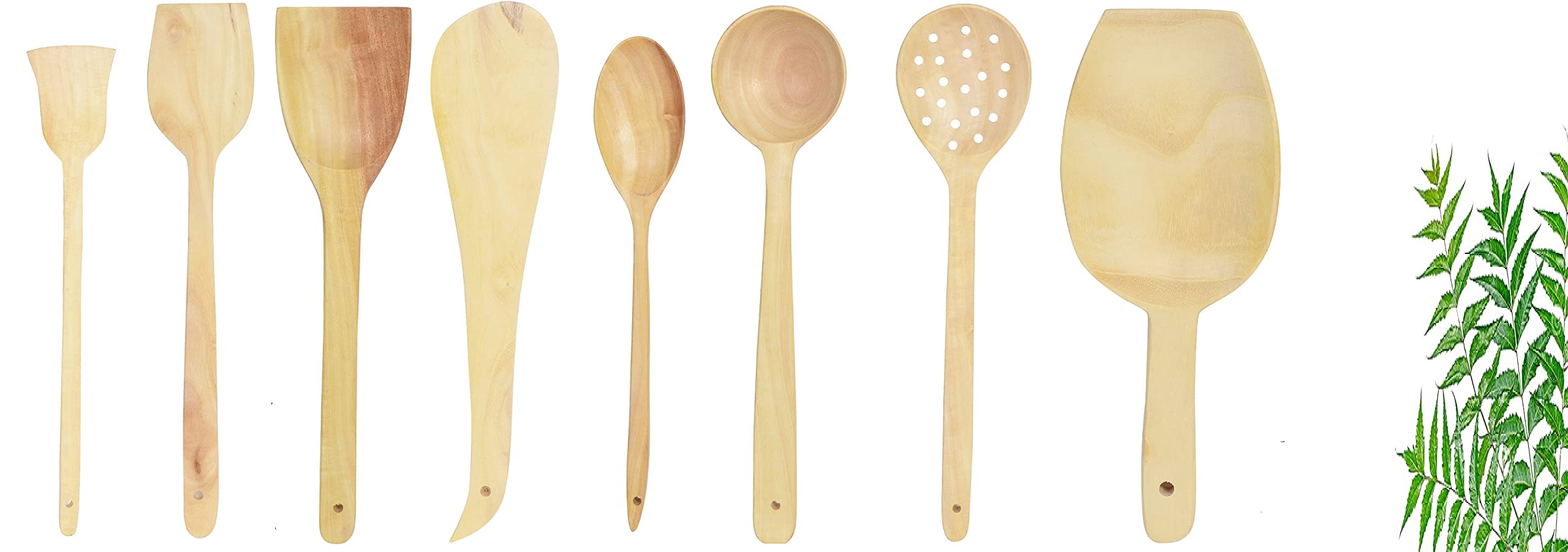 This Wooden Spatulas Made of Deshi Neem wood. We know that neem wood is a precious wood. Set of 8Kitchen Spatulas are Safe for non-stick cookware. Get this wooden spoon cooking and serving. Dimensions: Length ranging from 28 to 38cm Spatulas are made from a single block of neem wood so it doesn't have any joints. No harmful shining polish is used which is harmful for health and prohibit the neem wood antibacterial function. The non-scratch wooden spatula is not going to leave any scratch on pan. Use mild soap and warn water for cleaning.
