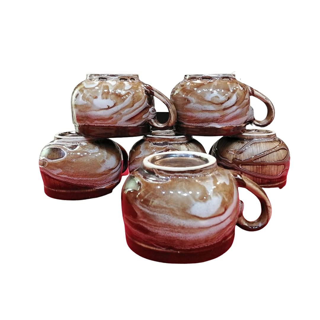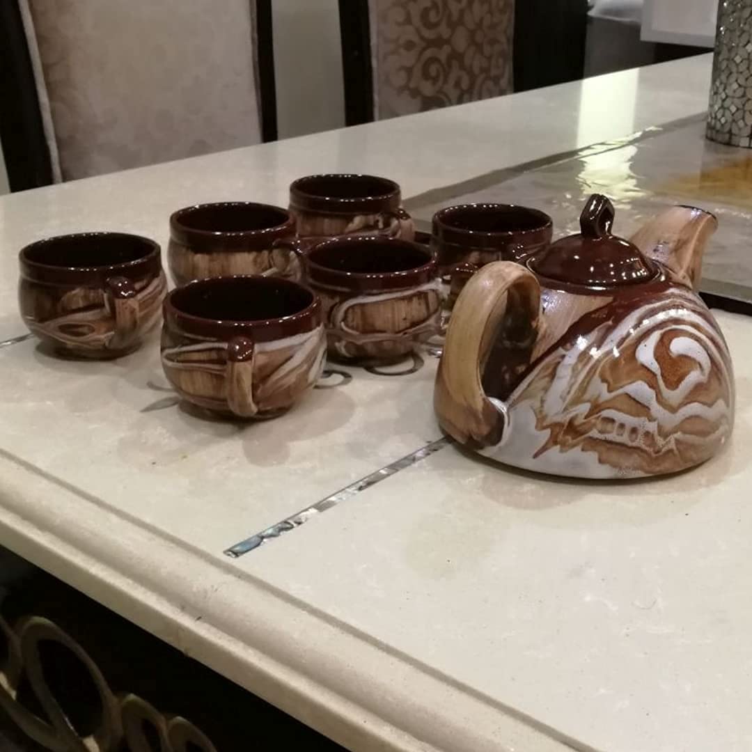 HomeKitchenServeware setsTea SetKHURJA POTTERY Tea Set of 6 Cup with Kettle Set | Tea Pot Ceramic | Handmade Gifts Set of Tea Pot Kettle and 6 Cups of Each 150 ML | Microwave Safe