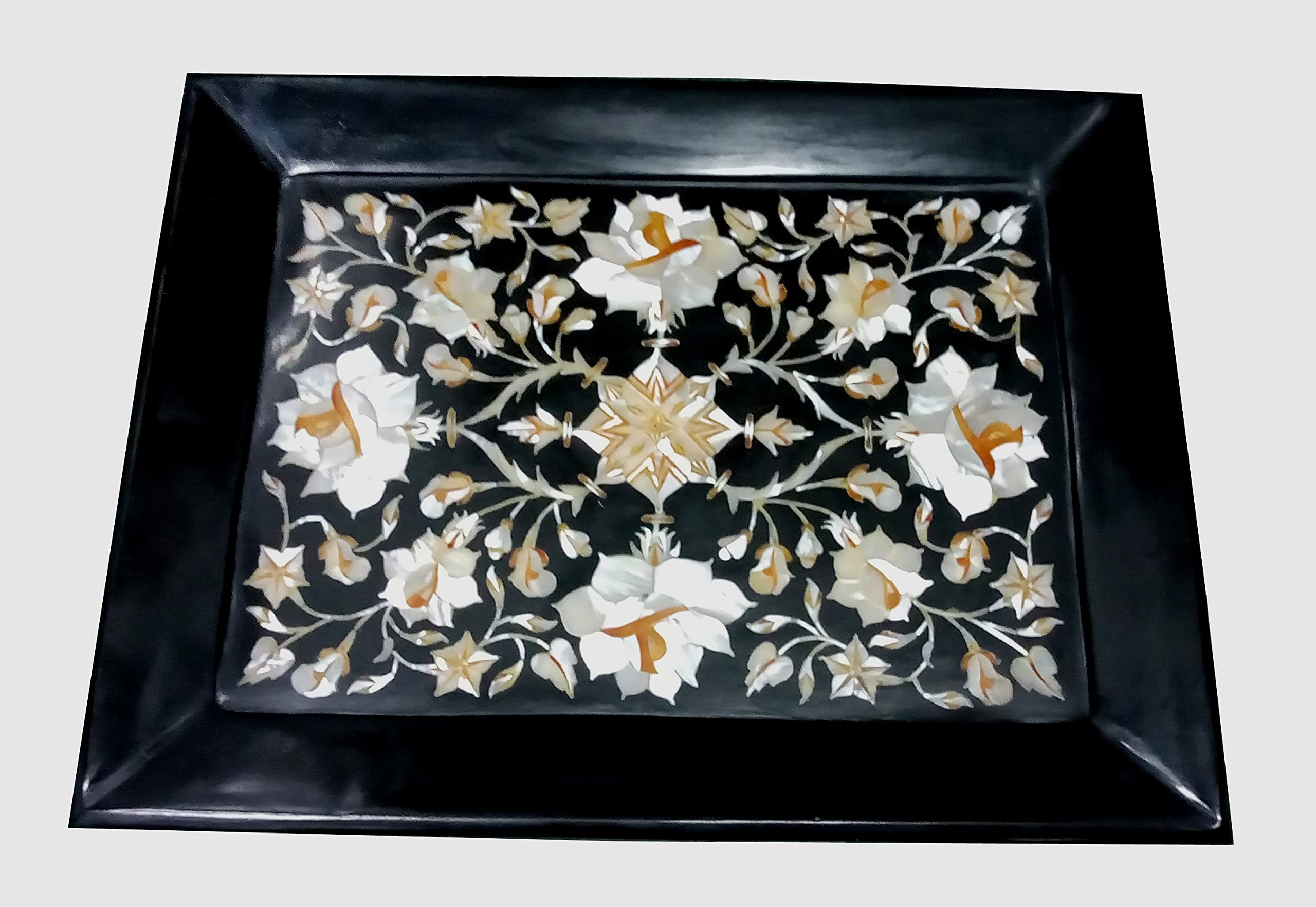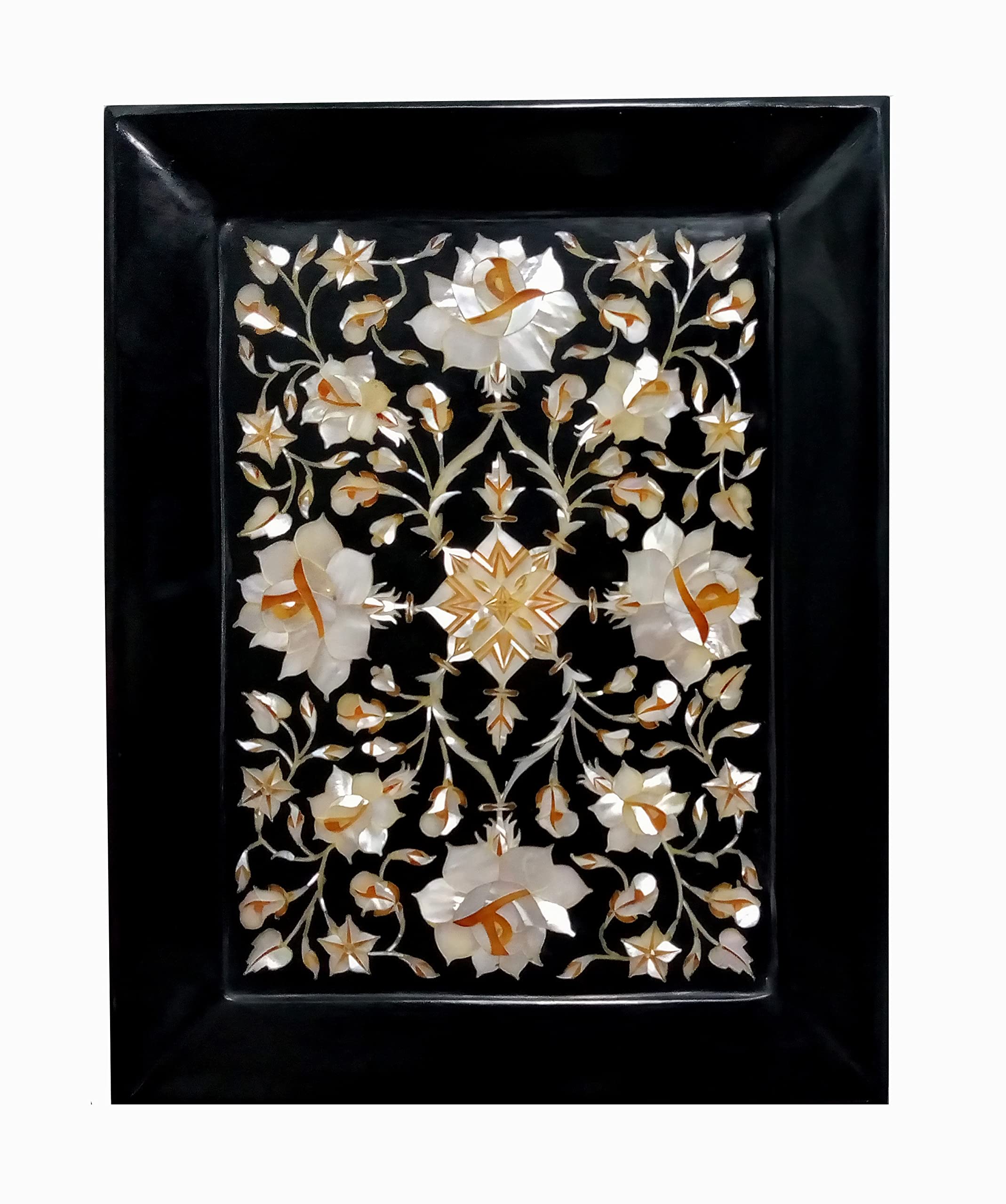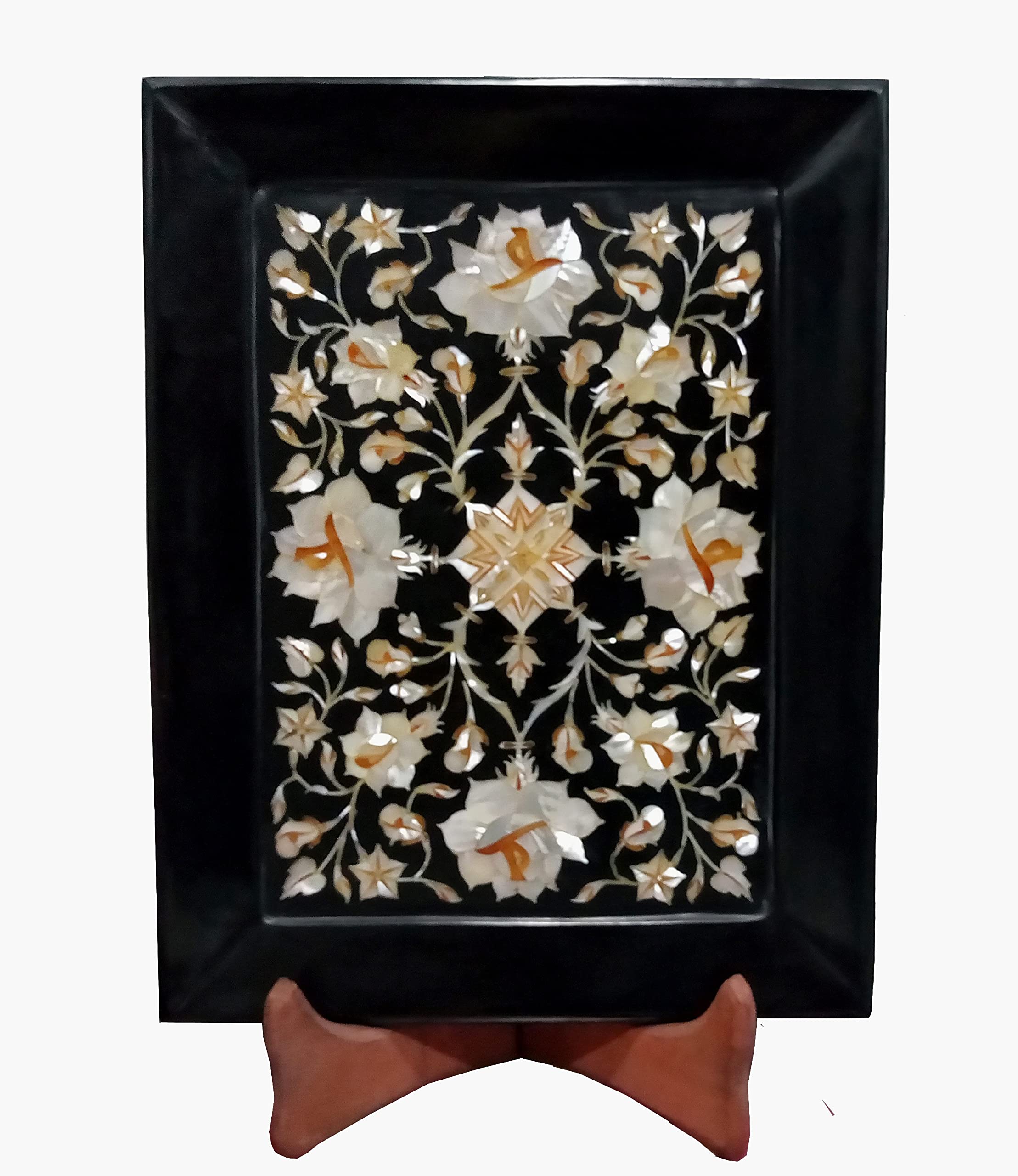 The Tray is made in Agra India & fully handmade and Perfect for Office Home. Design: Floral. We will send you a paper with description and Meaning of the stone . We will send you wooden stand also to display .The Tray can be used for decoration in Home and Office & also can be nice for gifts. To maintain this art piece simply clean it with soap water and dry cotton cloth. It is an art piece which will be a beauty & the conversation piece at home.