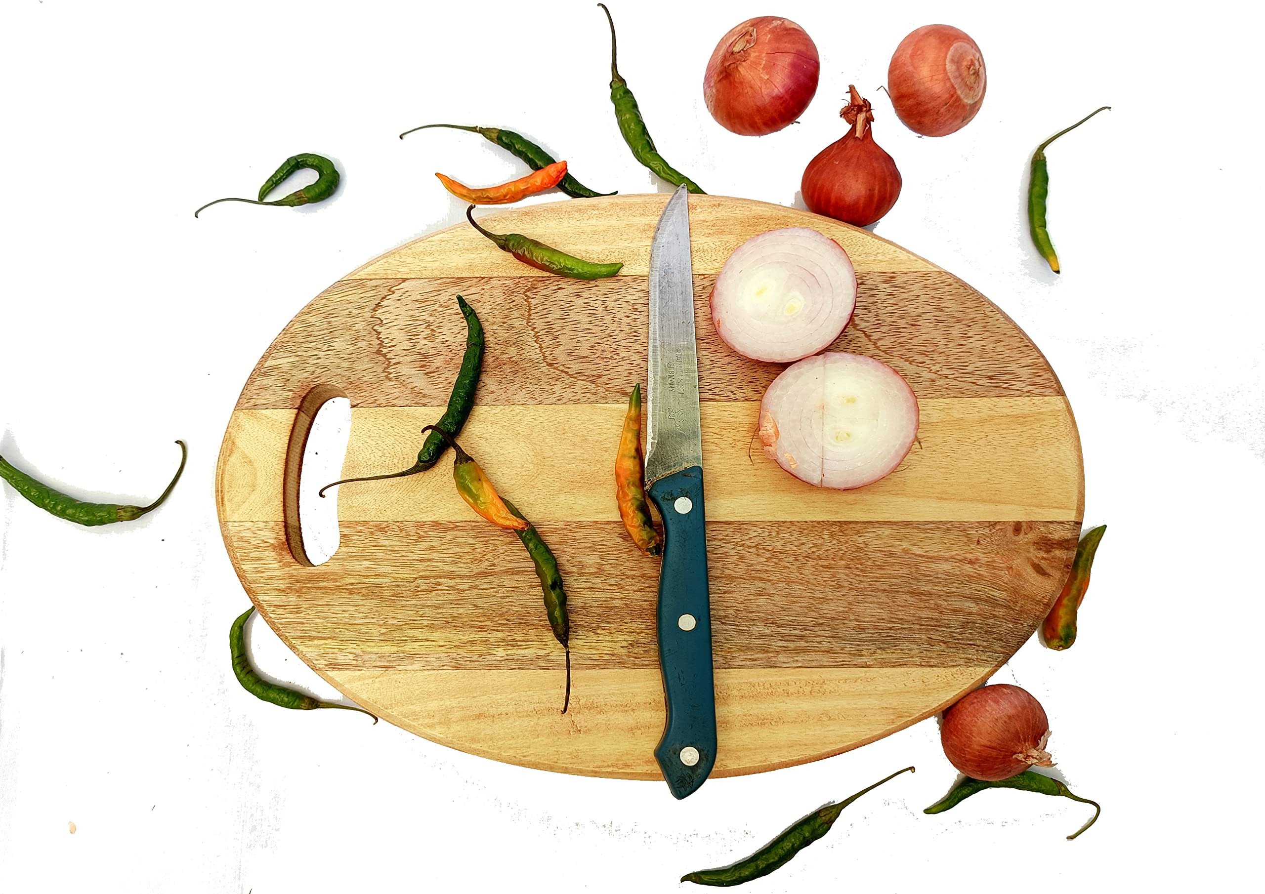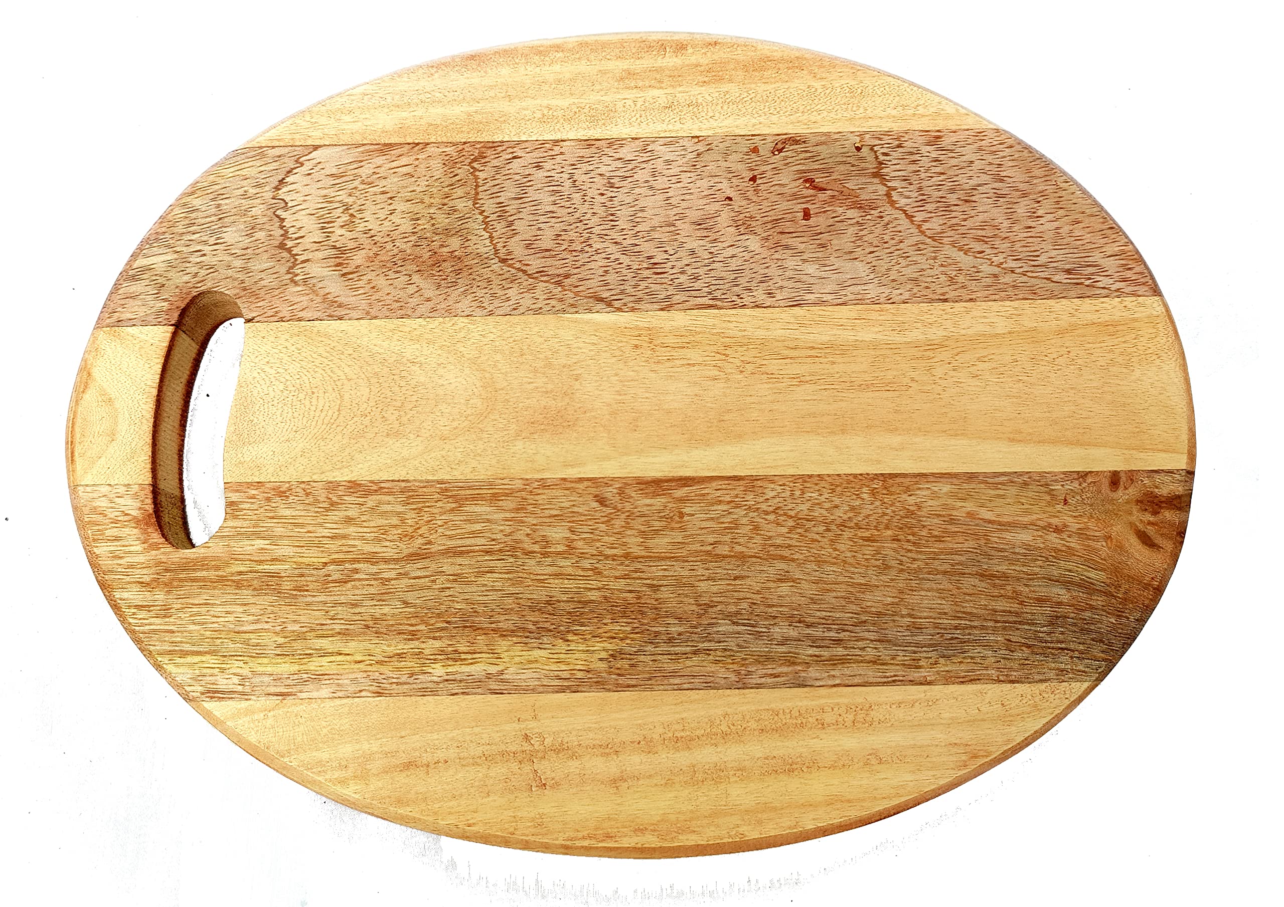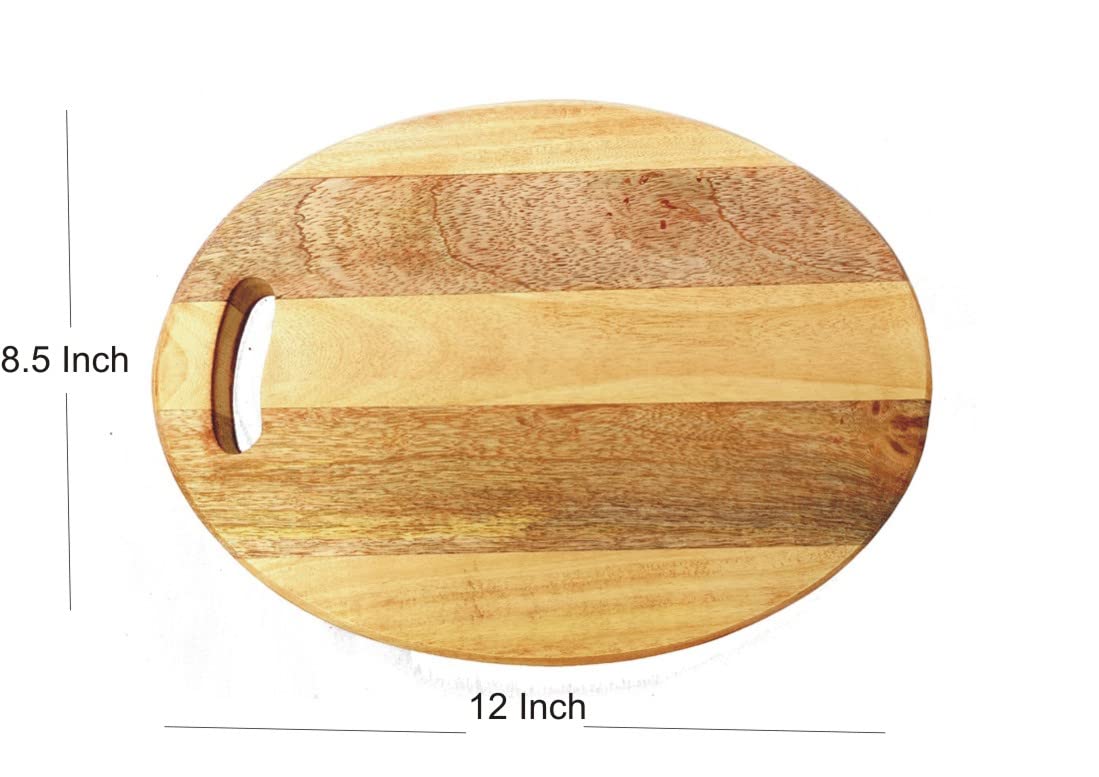 The SAHARANPUR HANDICRAFTS Wood Cutting Board has a classic and timeless style that complements any kitchen or dining decor. The oval shape with a convenient handle makes it easy to use and store. The rich brown color of the wood adds warmth and elegance to your kitchen. The board's simple yet stylish design allows it to blend seamlessly with both traditional and modern kitchen styles.