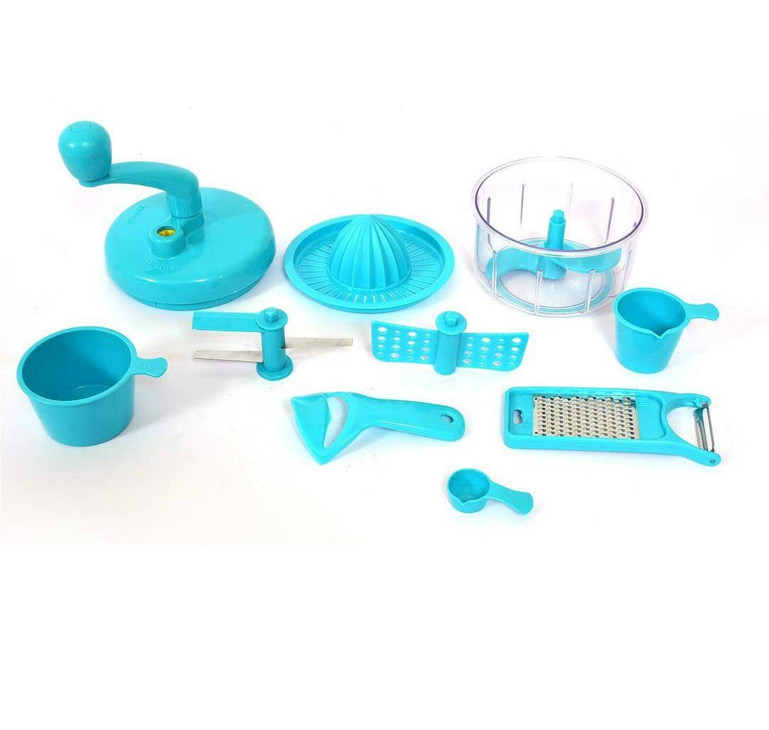 Crystal plastic 7-in-1 mini food processor is made of food grade plastic. You can use it for various functions like chopping mixing and grinding. Multiple applications in a single unit and is manual in function.
