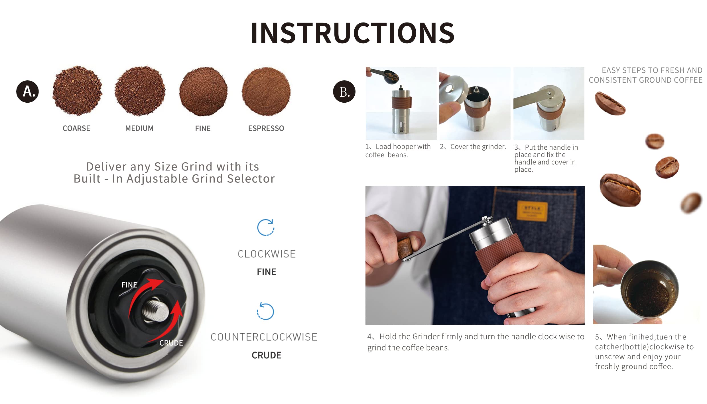 HomeKitchenKitchen ToolsFruit & Vegetable CuttersManual Coffee Grinder Hand Coffee Grinder Bean Grinder Portable Mini Coffee Grinder with Adjustable Settings Suitable Use for Home Office and Travel.