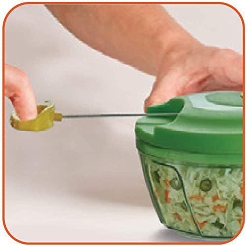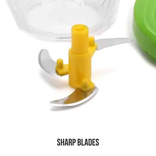 INSTRUCTIONS: 1) Carefully place the blade over the center of the bowl. 2) Cut the ingredients in crude pieces and place them in the bowl. To ensure best results fill at most 1/4th of bowl capacity with ingredients e.g. medium sized onion 3) Place the cover on the bowl. 4) Hold the lid with one hand and pull the handle with the hand until the desired results are achieved. 5) Take out the blade carefully before removing ingredients from bowl.