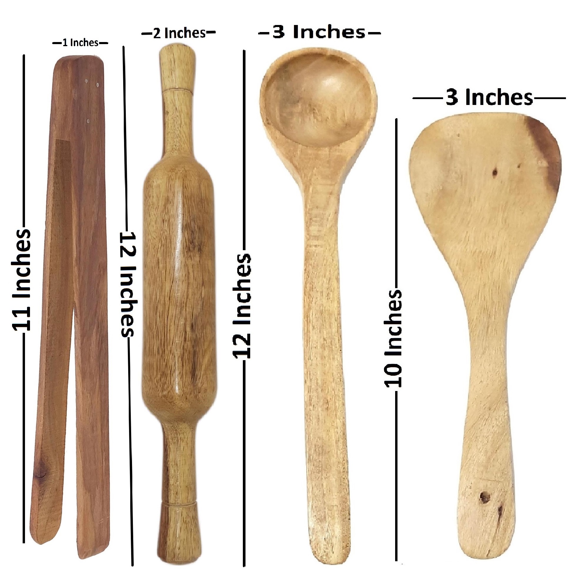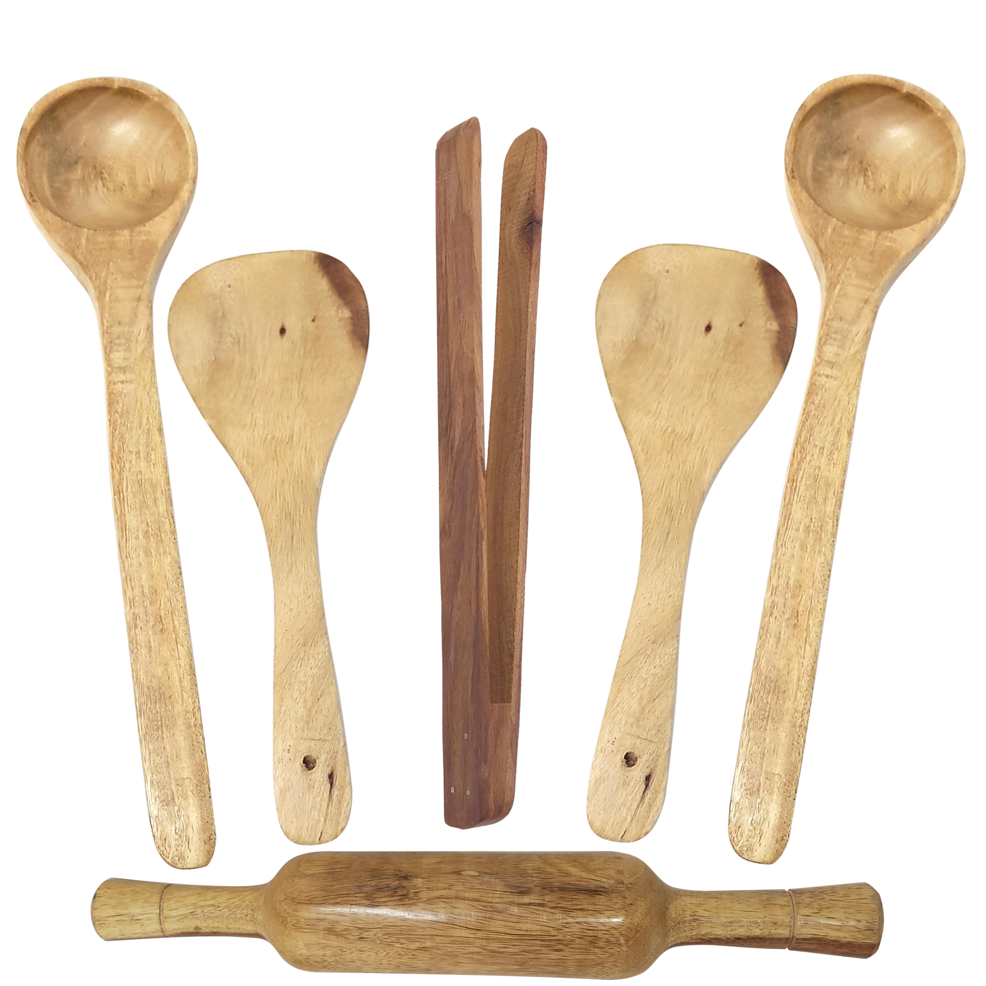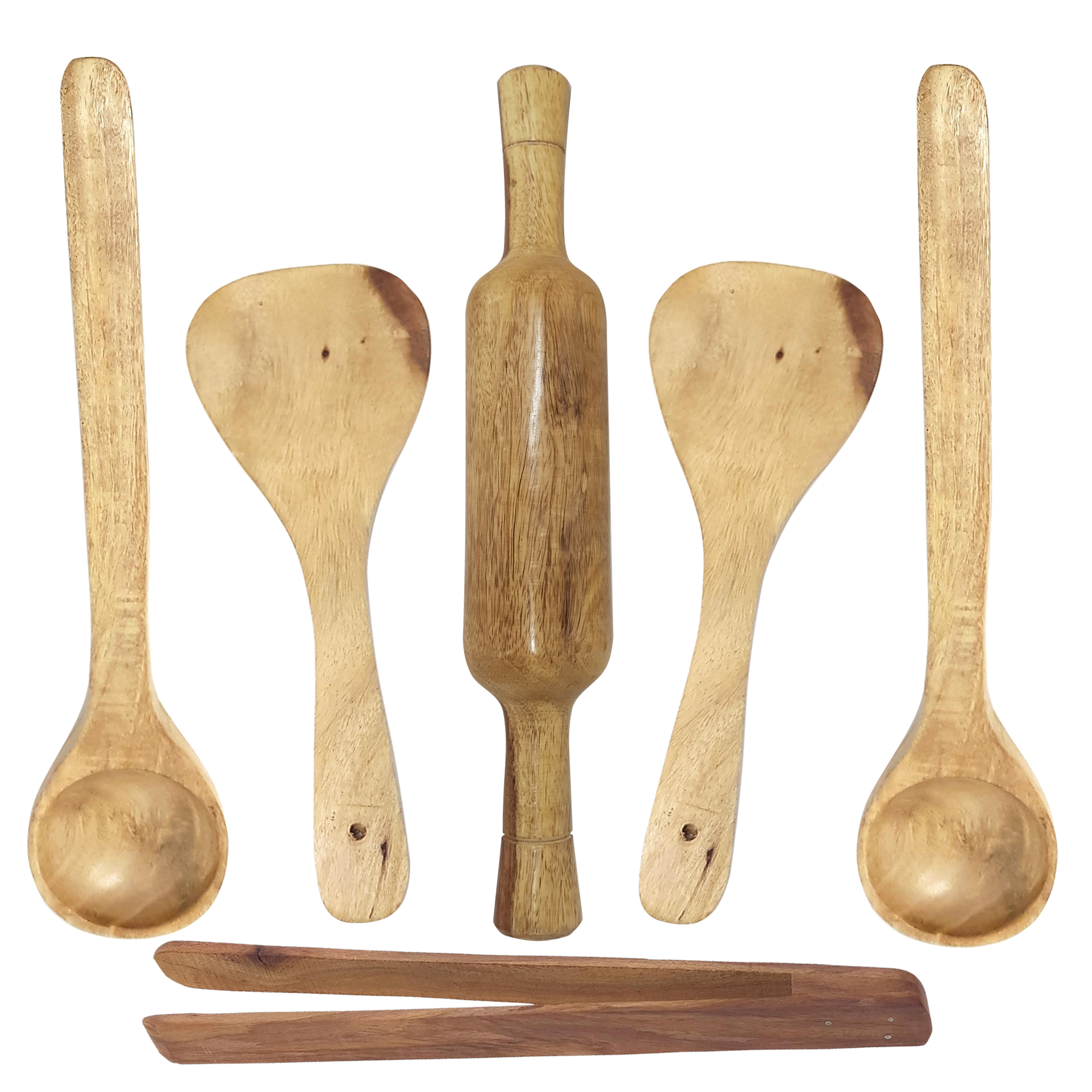 For those who love to cook, BuzyKart presents this beautifull Wooden Kitchen tool pack of 6. BuzyKart Traditional Hand Carved Cooking Accessories, Out Of Best Quality Long Lasting Processed Natural sheesham Wood. Unmatchable Elegance Adorning Your Lifestyle . It Reflects On That Artistic Side Of You And Dwells In Perfection Of Artistic Work. Add It To Your Kitchen Accessories Before You Regret Losing It To Others. It Contains 4 Cooking Spoons, one rolling pin (belan)and a wooden chimta. Which Can Be Used For Different Purposes. Perfect For Serving Meals, Our Set Of 3 Piece Cooking Spoon Wooden Ladle Features A Soft Handle For Comfort And Ease Of Use Whilst Handling. The Wooden Curve Spoon Is Ideal For Serving Variety Of Dishes. With A Hole In The Handle That Can Be Hung Over A Hook Out The Way, Our Set Of 3 Piece Cooking Spoon Wooden Ladle Can Be Stored Efficiently To Keep Your Kitchen Surfaces Neat And Organised. Wash them carefully with soft and smooth scrubbers to avoid scratches.
