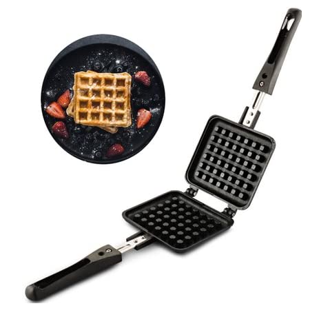This waffle baking tool adopts aluminum alloy, safe, anti-rust, sturdy and long lasting. Non-stick coating heating pan is easy to clean. Press the double-side plate, easy to shape up. You will enjoy delicious waffle even at home thanks to this easy-to-operate waffle making mold. Features: Mainly made of aluminum alloy, high quality, food grade safe and sturdy and durable. Surface coating ensures non-stick and easy cleaning. Long handle is easy to grip and heat insulation, protect your hand from burning. Easy to use, clean, sanitation and low power consumption. It is safely used at fuel gas stove, but not suitable for induction cooker. Specifications: Condition: 100% Brand New Material: Aluminum Alloy Color: Black Package Included: 1, Waffle Baking Mold Note: For the first use, please clean the mold and dry on the fire; brush a layer of melted butter on the surface and then dry 2-3 minutes. This step is conducive to the formation of protective film in the mold and also can improve the service life of the mold and non-stick effect.