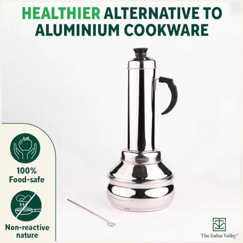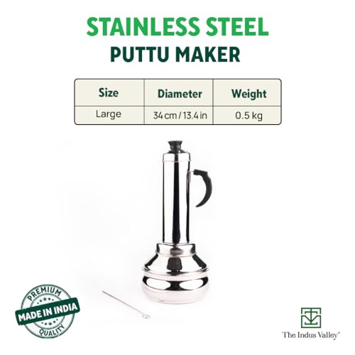 The Indus Valley Stainless Steel Puttu Maker with Bakelite Handle |34cm, 0.46kg Gas & Induction Friendly |100% Toxin-Free, Naturally Non-Stick, Long Lasting