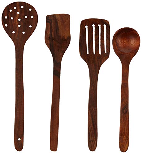Jaipuri Haat Hand Made Wooden Serving and Cooking Spoon/Spatula/Kitchen Utensil Set of 4