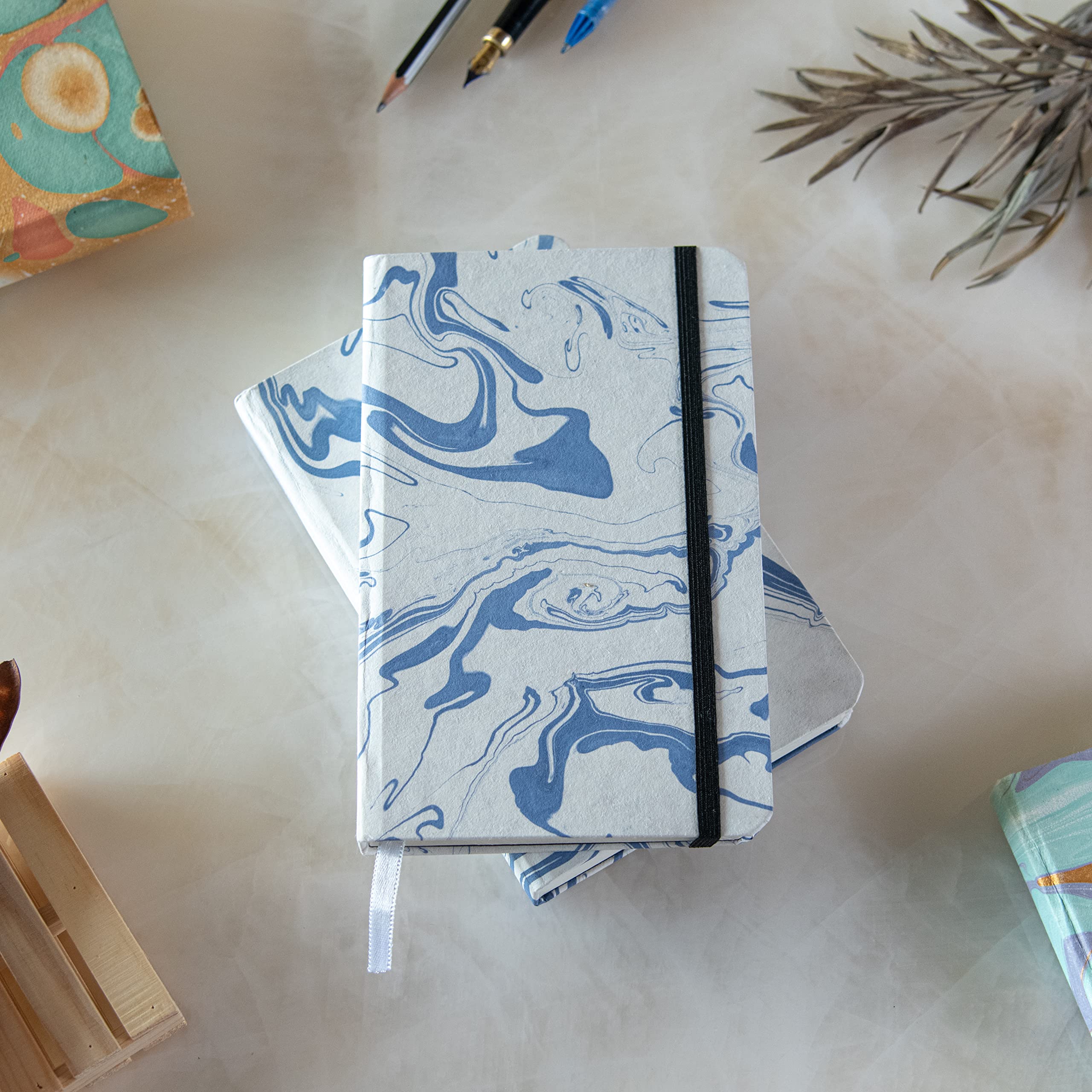 Write your own story down which helps more than keeps everything in your mind There are Expandable Inner Pocket + Elastic Band Closure + Ribbon Bookmark in this unruled notebook/journal book. Moreover the Professional durable hard cover notebook journal will protect your thoughts to last for years and easily to lay out flat for comfortable writing and reading. CLASSIC UNRULED CUTE NOTEBOOK/JOURNAL This Note book provides plenty of space for notes lists and more with an elegant stylish Marbled cover. This plain notebook is suitable for most pen types such as ballpoint pens brush pens fineliner pens glitter pens and so on. A great choice for everyday use at school office notebook or home. PREMIUM THICK PAPER 160 Pages (80 Sheets) premium Handmade paper which is thick and cut evenly resisting ghosting and ink bleeding. The acid-free off white paper protects damage from light and air and protects your eyes from irritation. Perfect size for carrying around or put into your bag. This blank page notebook/journal is perfect as travel notebook business planner notebook and also excellent gift for Birthday Halloween Christmas or back to college choice for yourself family and friends. It provides plenty of space for notes lists and more with an elegant stylish cover. Great as college office art supplies for writers business partners classmate educators and multipurpose notebook for office home work school class art drawings teaching studying and church supplies.
