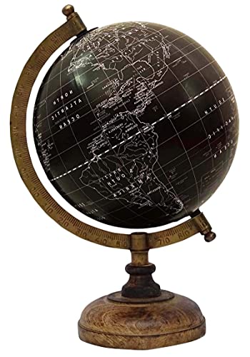 11.3" Unique Antiique Look Black Decorative Desktop Rotating Globe Home Office Table Decor Globes By Globes Hub-Perfect for Home, Office & Classroom