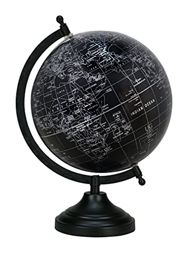 11.5" Black Unique Antiique Look Decorative Rotating World Globe Desktop Atlas Geography Ocean Earth Home Decor By Globes Hub-Perfect for Home, Office & Classroom