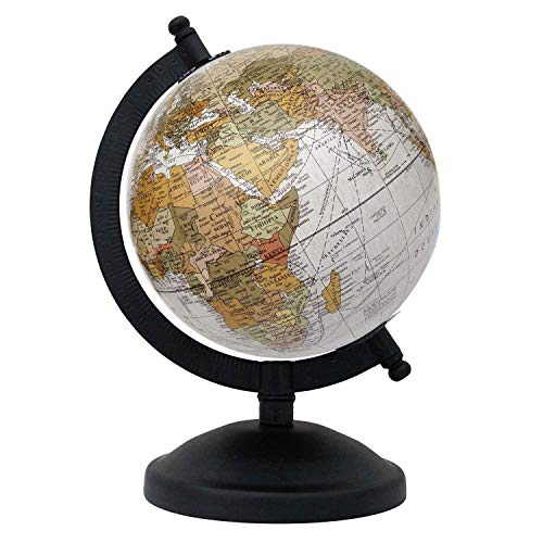 5" Unbreakable Unique Antiique Look Metal ARC and Base Ruff Off White Political Globe -- Perfect for Home, Office & Classroom By Globes Hub