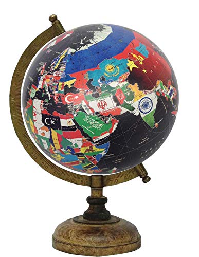 • 8 Inch classic design rotating world globe with mango wooden base. this artfully drawn, antique shaded, political and topographical handcrafted world globe will be a substantial addition to any office, classroom, or home