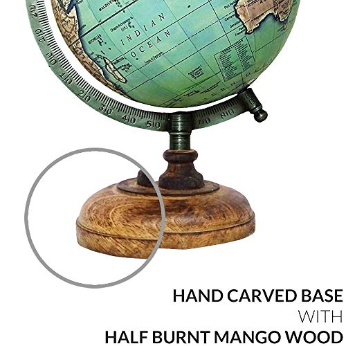 8" Unique Antiique Look Rotating Desktop Globe World Earth Ocean Table Decor Geography - Perfect for Home, Office & Classroom By Globes Hub