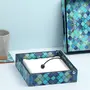 SAHARANPUR HANDICRAFTS Handmade Decorative Tissue Holder for Table in MDF (19x19cm) - Paper Napkin Holders for Dining Table Napkins Stand Fancy Tissue Paper Holder for Office Desk Tissue Dispenser (Blue Drops)