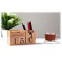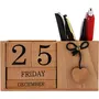 BIJNOR - METAL INLAY IN WOOD Handmade Wooden Desk Organizer Wooden Date Calendar Deck Calendar with Pen Stand Set Pen Stand Business Card Holder with Wooden Calendar for Office Table Accessories