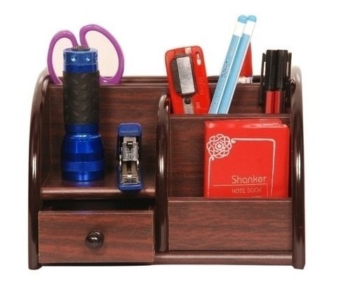 Multi-Functional Wooden Pen Stand with Drawer