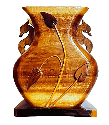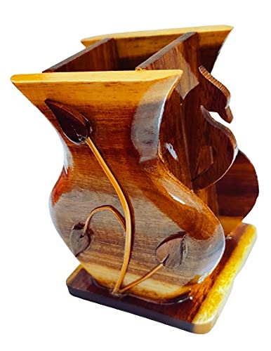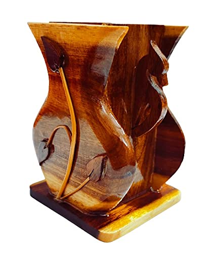 SAHARANPUR HANDICRAFTS Hand Carved Stationery Cum Cutlery Holder in Wood -Pen Holder for Office Stylish Office Accessories for Desk Pen Stand for Study Table Stylish