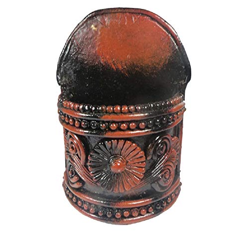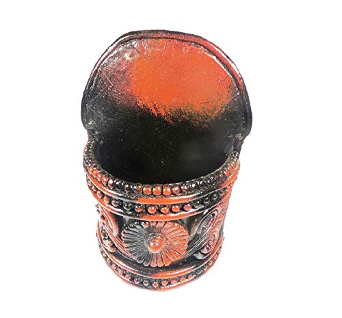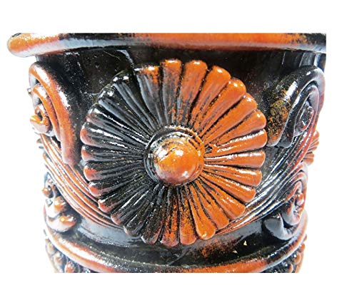 WOOD CARVING WORK antique looking light weight dark metal finish handcrafted paper-made (papier mache) unbreakable round pen stand (Chocolate and Black in colour; Length: 14 cm X Height:19 cm X Width: 7 cms; Weight: 170 grams) for use in homes study rooms office spaces business spaces and for gifting purposes.