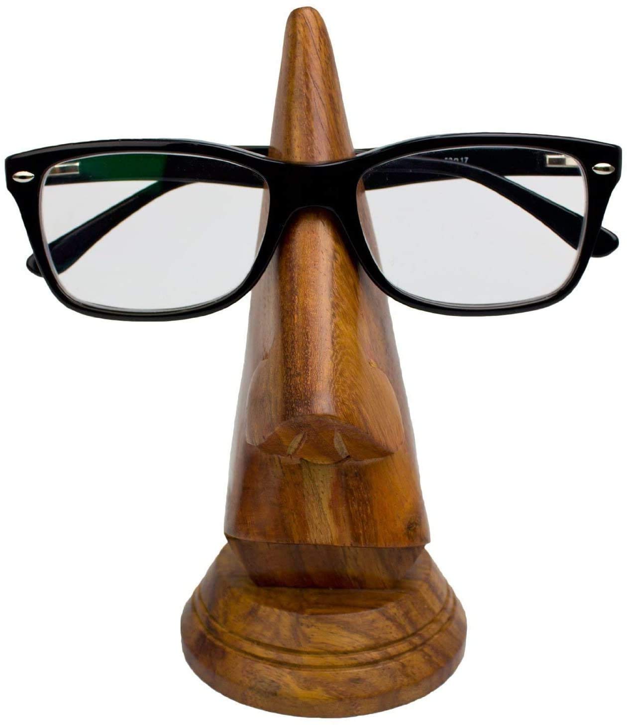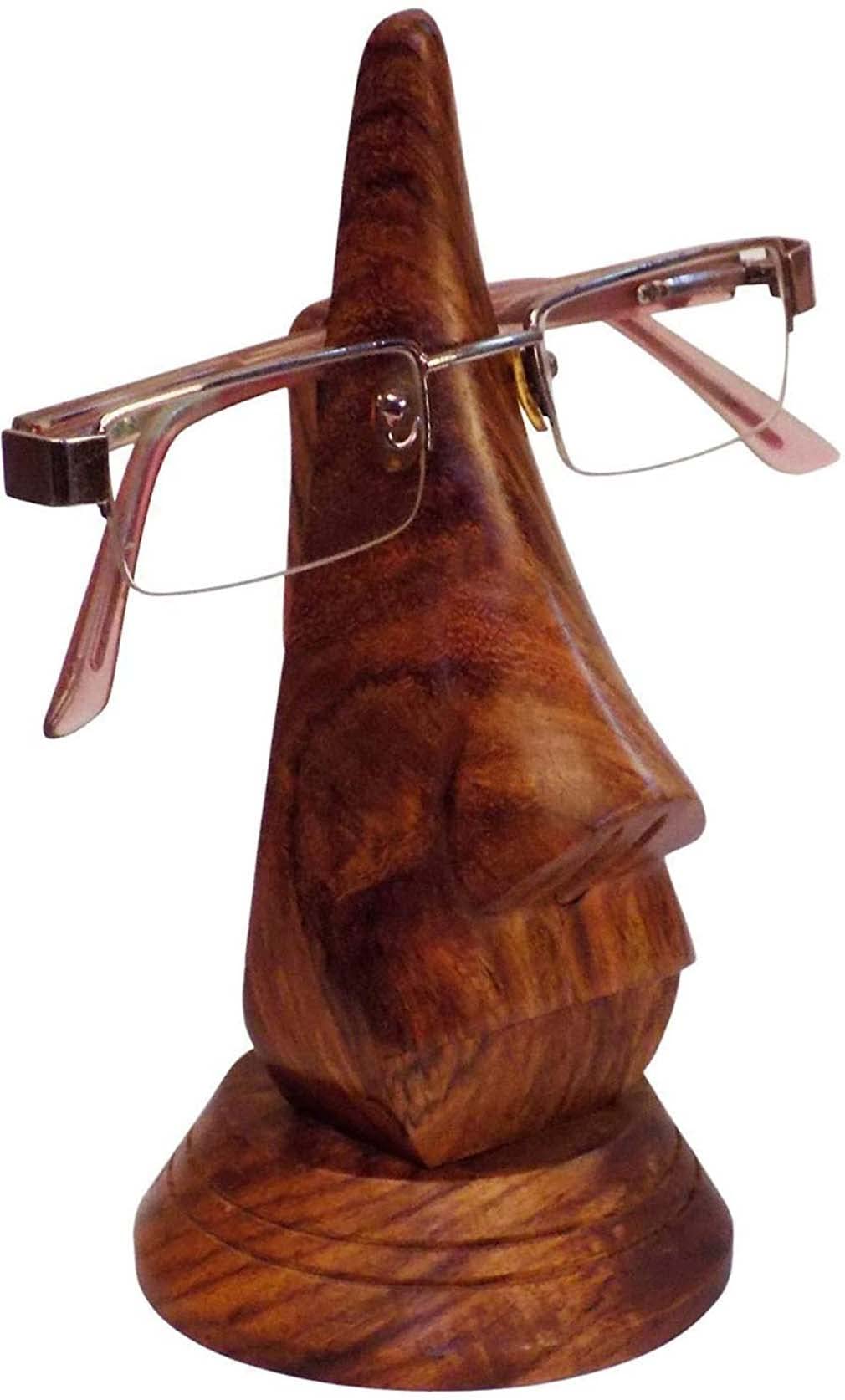 BIJNOR - METAL INLAY IN WOOD Nose Shaped 6 Inch Long Round Surface Spectacle Holder for Office Desk Spectacle Holder for Home Showpiece Wooden Unique Gifts for Men Wooden Googles Holder Decoration Stand