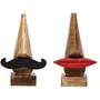 BIJNOR - METAL INLAY IN WOOD Wooden Handmade Spectacle Eyeglass Holder Display Stand Black Much Rosewood & Red Lip Mango-Wood Nose Shaped Set of 2 Specs Holder Specs Holder Standard