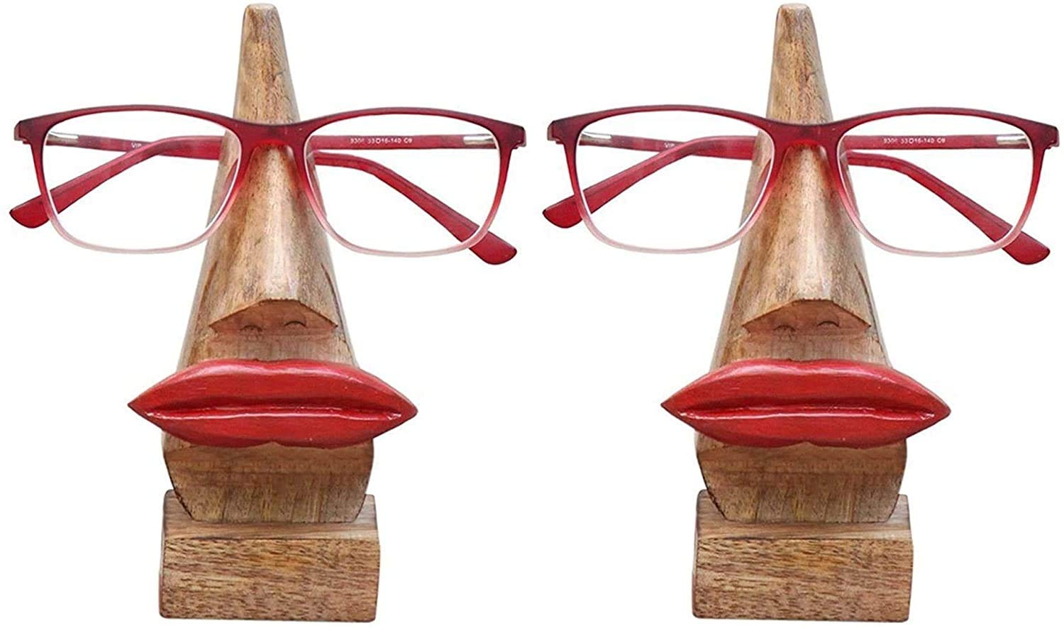 dg DESI GEN Wooden Home Decorative Nose Shaped Spectacle Eyeglass Holder Display Stand