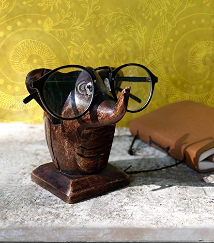Wooden Elephant Shape Eyeglass Spectacle Holder Hand Carved Display Stand Home Decorative