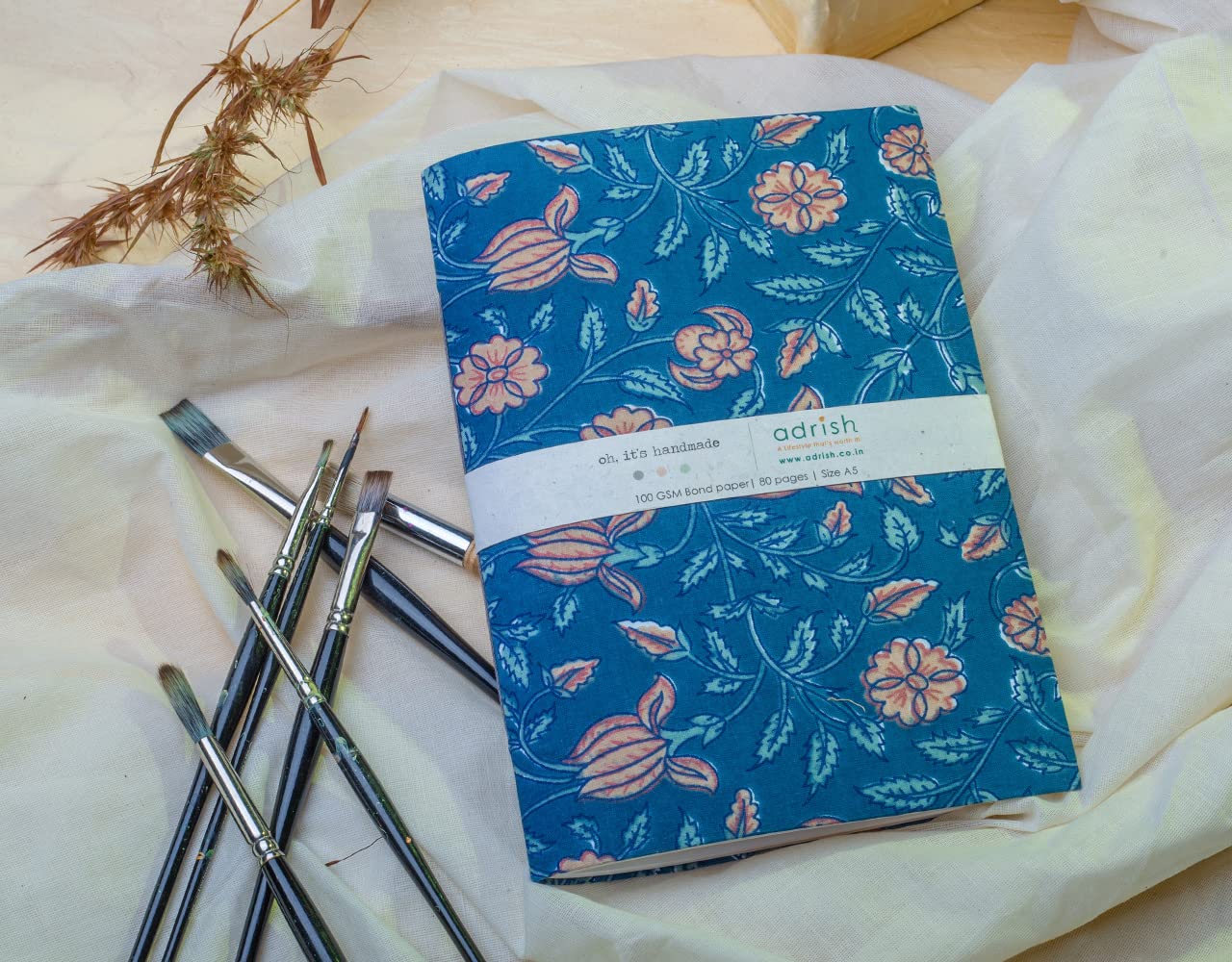 ADRISH Zerowaste Handmade A5 Journal (Bohemian Floral - Indigo Blue)