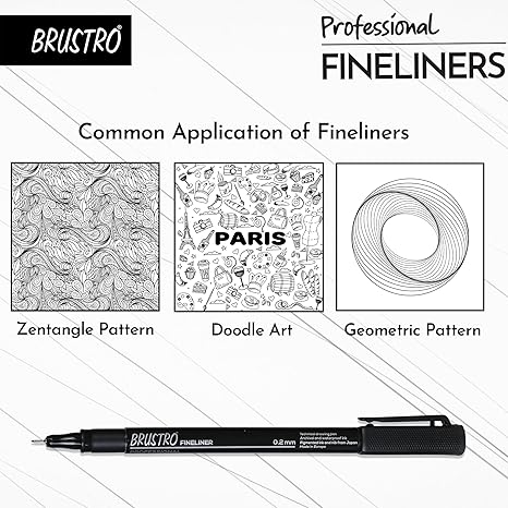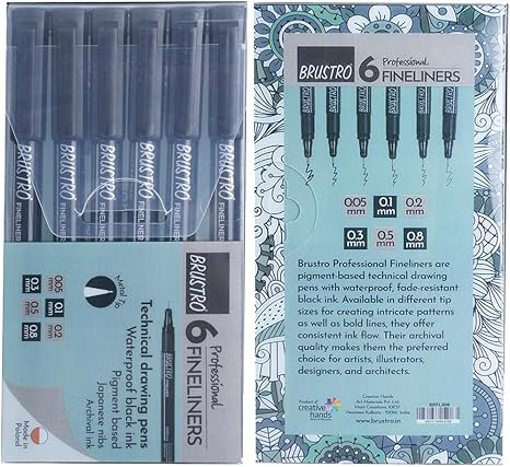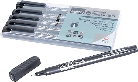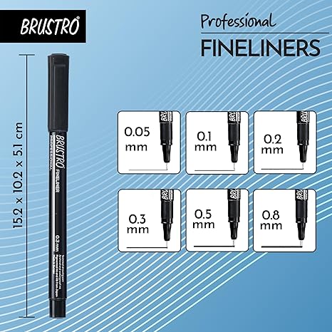 BRUSTRO Professional Pigment Based Fineliner - Set Of 6 (Black) Set of 6 Micron pen Black, Black