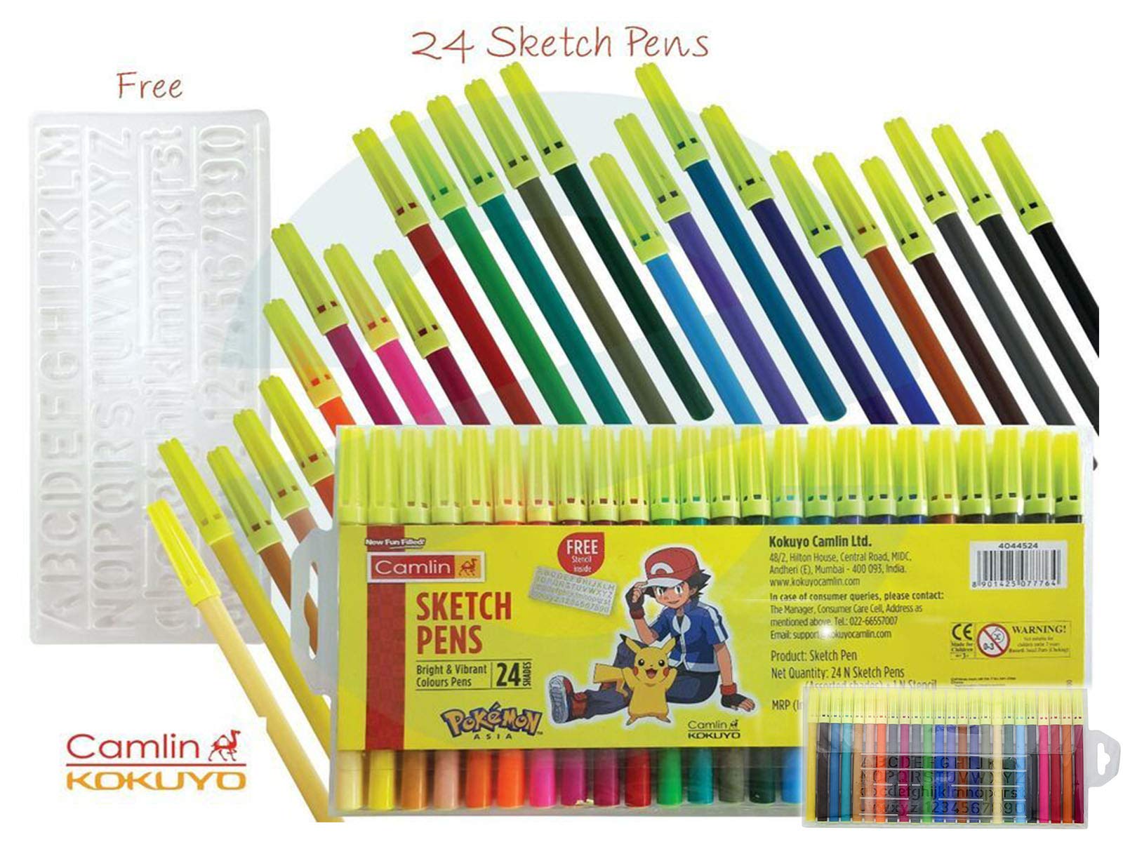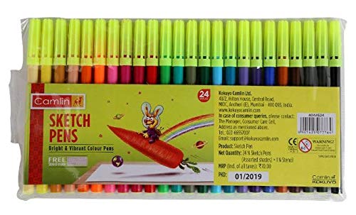 Camel Camlin 24 Shades Sketch Pens with Free Stencil -(Assorted)-Pack of 2