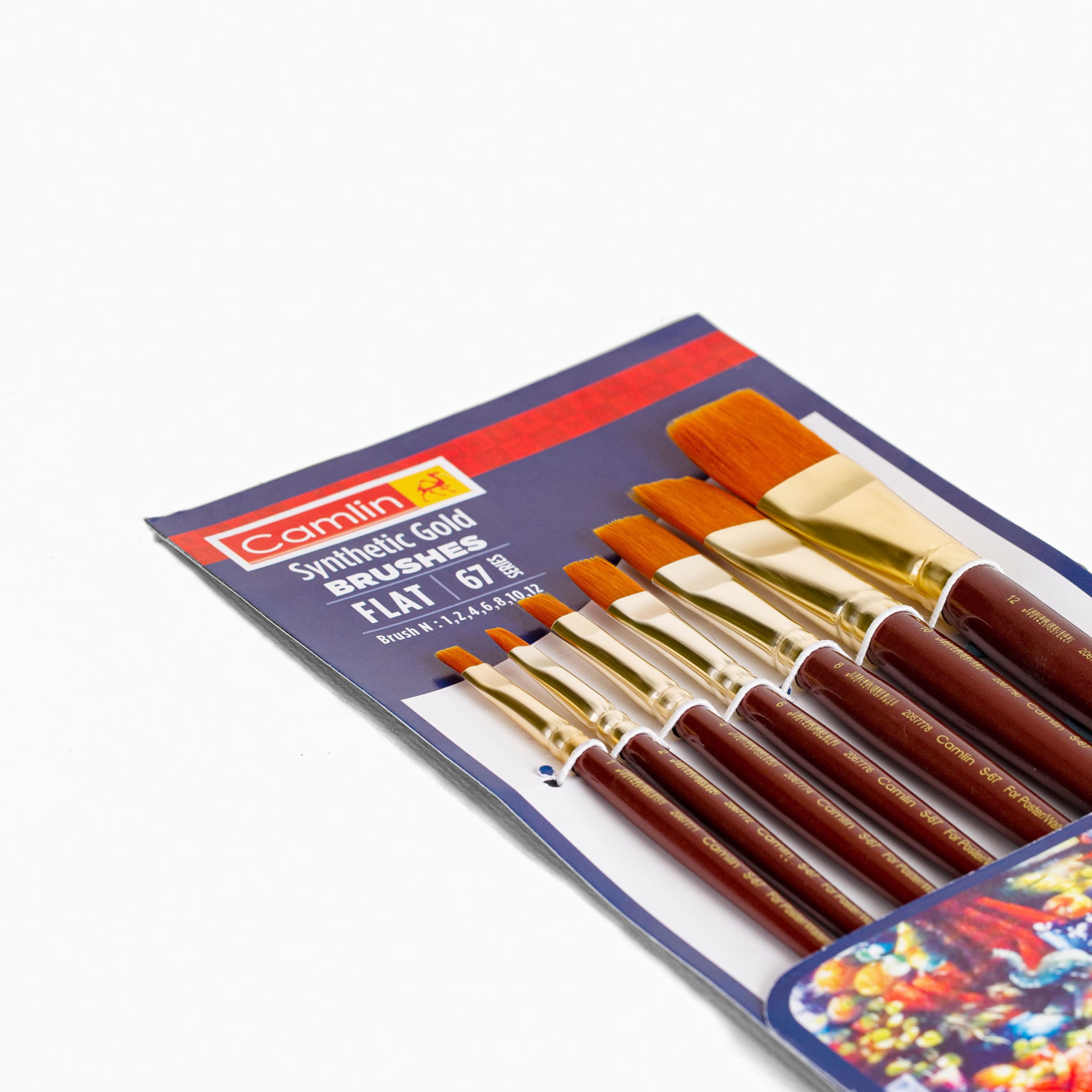 Camel Paint Brush Series 67 - Flat Synthetic Gold, Set Of 7