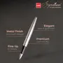 The Cello Signature Creme Ivory Roller Pen is meant for an ultra-smooth writing experience This metal pen exudes elegance with its satin nickel finish and gold clip The roller pen has a magnetic cap system A roller pen that features a 0.7 mm fine tip for fine writing This premium pen is a perfect gift for working professionals and your loved ones