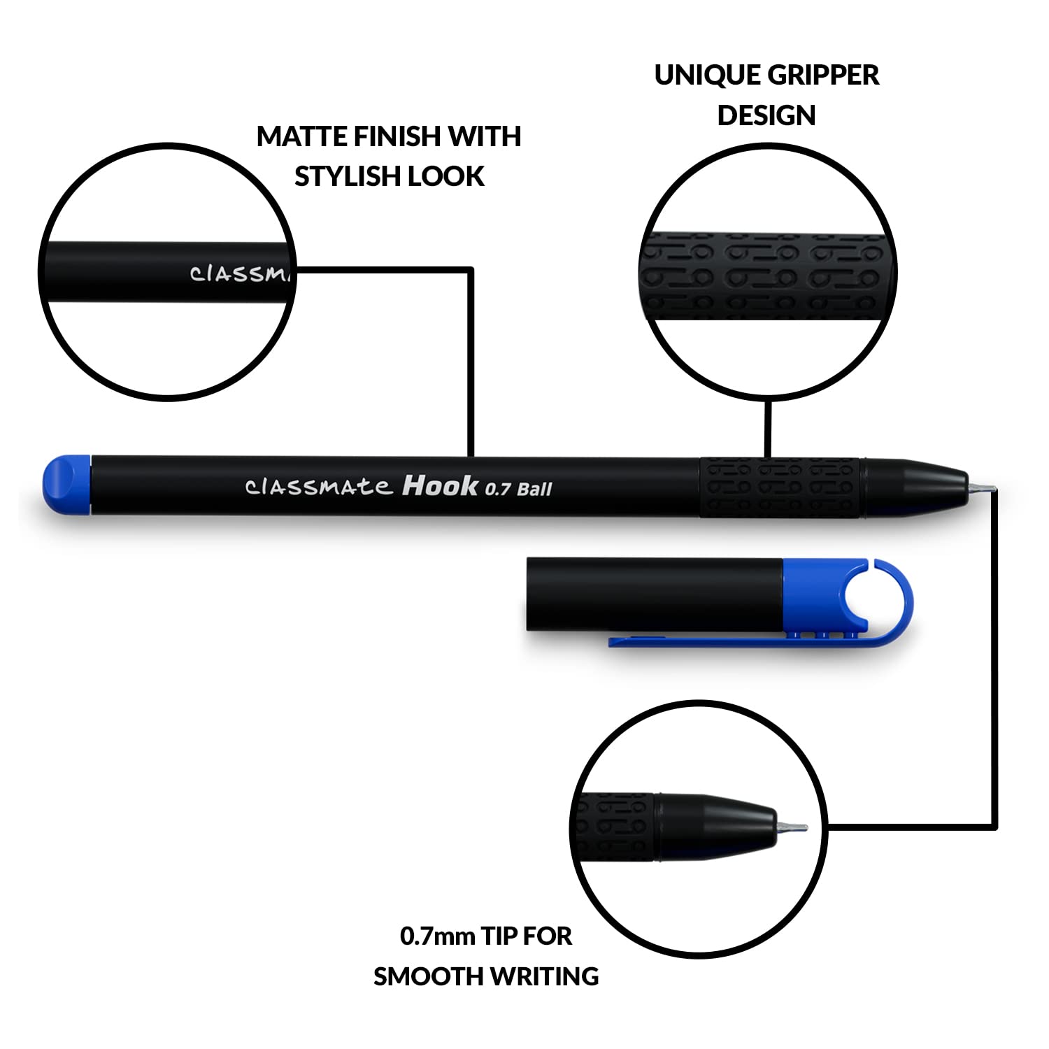 HomeOfficeStationary ProductClassmate Hook- Blue & Black Ball Pens (Pack of 25) |Smooth & Fast Writing Ball Pens|Unique Griper for Writing Comfort|Attractive Body Design for Boys & Girls|School & Office Stationery