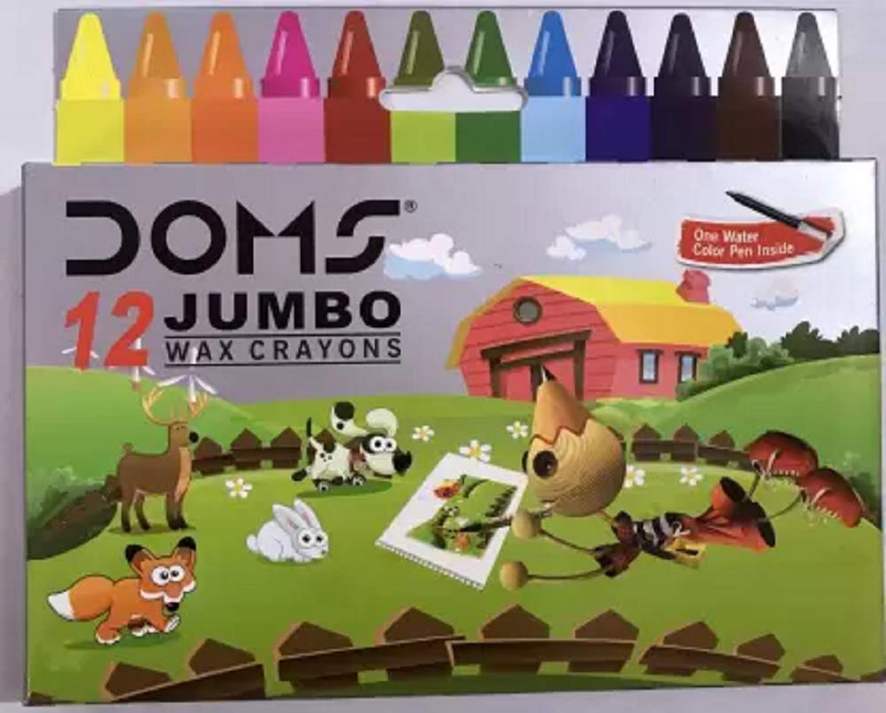 Doms 12 Shades Jumbo Wax Crayons | Smooth & Even Shading | Bright & Playful Colors | Free Silver Crayon Inside | Non-Toxic & Safe for Childrens | Pack of 1